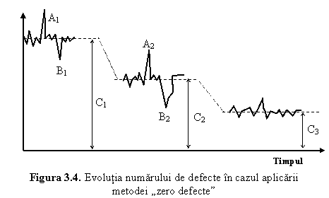 Se ajunge astfel la imbunatatirea nivelului acceptat de calitate (reducerea numarului mediu de defecte) de la C1 la C si asa mai departe, pana ce, in timp, se ajunge la obiectivul final, zero-defecte.