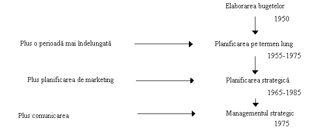 Nivelul inalt de instabilitate a anilor 70 face PS vulnerabila ca metoda de gestiune, scade eficienta managementului. Imbogatita cu noi tehnici si procedee planificarea strategica incearca dezvoltarea de noi strategii in cadrul afacerilor existente. Astfel apare managementul strategic. Managementul strategic presupune ajustarea( modificarea, adaptarea) potentialului firmei la noile conditii.