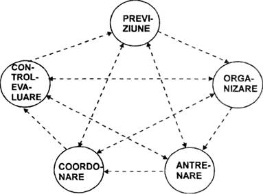 Dupa opinia noastra, procesul de management se poate partaja, avand in vedere natura sarcinilor implicate de desfasurarea lui si modul de realizare, in cinci functii: