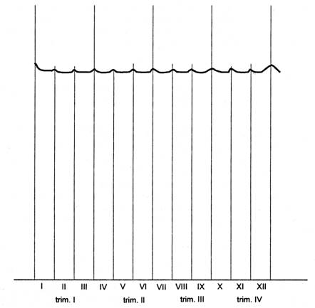 Fig. 1.9 Evolutia intensitatii functiei de control-evaluare in decursul anului
