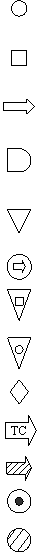 Pe langa cele doua grupe de simboluri se utilizeaza si altele care formeaza grupa simbolurilor derivate, simbolul grafic fiind format dintr-unul din simbolurile de baza la care se adauga elemente informative suplimentare.