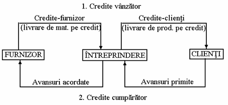 1) creditele vanzator, reprezentand vanzarile de marfuri pe credit. Intreprinderea apare in doua ipostaze si anume cea de imprumut, prin creditele furnizori pentru echipamente materiale etc. si cea de imprumutator, prin creditele - clienti pentru produsele livrate sau lucrarile executate beneficiarilor sai;
