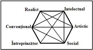 Teoria imagineaza o schema hexagonala care indica atat tipurile generice de cariera cat si profilurile specifice de personalitate care orienteaza o anumita persoana spre o anumita cariera.