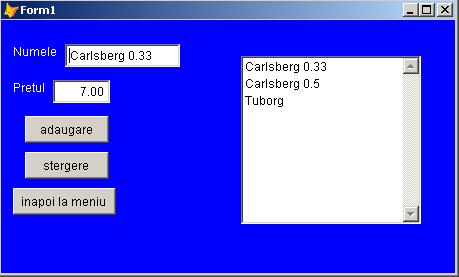 -se da click pe lista din dreapta pentru a vizualiza ce s-a introdus (in cazul de fata 3=cantitate, Carlsberg 0.33=produs, 7=pret unitar)