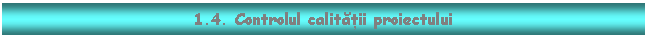 Controlul calitatii implica monitorizarea rezultatelor specifice ale proiectului in vederea masurararii conformitatii lor cu standardele si reglementarile de calitate de referinta si identificarea cailor de eliminare a cauzelor de neconformitate.