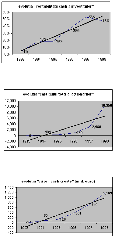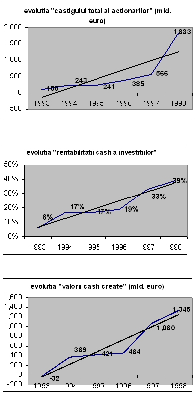 Cu alte cuvinte, firmele care sunt in masursa sa creeze valoare economica au o evolutie favorabila a valorii de piata si invers.