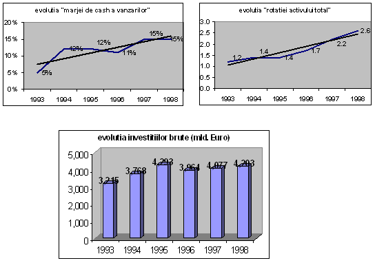 Firma americana este a patra mare companie producatoare de calculatoare din lume (dupa IBM, Hewlett-Packard si Compaq). Valoarea cash creata de firma in cei cinci ani luati in considerare a depasit un miliard de EURO. Dupa cum rezulta din graficele de mai jos, parghia creatoare de valoarea in cazul Dell Computer a constituit-o rentabilitatea cash a investitiilor (64%), in timp ce dezvoltarea, masurata prin nivelul investitiilor brute efectuate in aceasta perioada, a participat numai cu 36%. Primul din cei doi factori la randul sau s-a sprijinit cu prioritate pe cresterea marjei de cash flow a vanzarilor si mai putin pe eficienta utilizarii activelor. Cresterea spectaculoasa a marjei de cash flow - de la 1% in 1993 la 8% in 1998 s-a datorat utilizarii extensive a tehnologiei Web precum si in reducerea costurilor asociate furnizorilor. Firma Dell realizeaza vanzari prin internet in valoare zilnica cca. 16,5 mil. EURO (19,5 mil. USD), tinta fiind de a detine 50% din totalul vanzarilor on-line in anul in curs. Ridicarea eficientei utilizarii activelor se bazeaza pe o focalizare puternica a managementului asupra capitalului de lucru, durata medie de stocare diminuandu-se de la 32 de zile in 1994 la numai 6 zile in 1998. De asemenea strategia de vanzare directa - eliminandu-se deci retelele intermediare, a avut un impact deosebit asupra accelerarii rotatiei stocurilor.