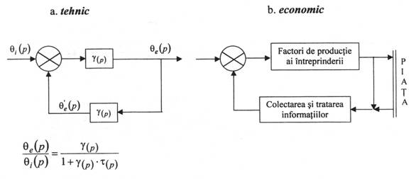 Prin analogie cu sistemele tehnice de comanda si control se poate reprezenta binomul intreprindere-piata sub forma din figura 3,b in care se disting: