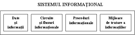 Prin sistem informational se intelege ansamblul de date, informatii, circuite si fluxuri informationale, proceduri si mijloace de tratare a informatiilor care sunt necesare pentru fundamentarea, stabilirea si realizarea obiectivelor organizatiei.