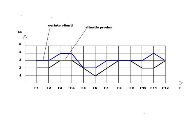 Din graficul anterior se observa ca functia F6 - functia estetica, functia F2 - identitatea produsului, respectiv F1- disponibilitatea produsului reprezinta o structura relativ costisitoare.