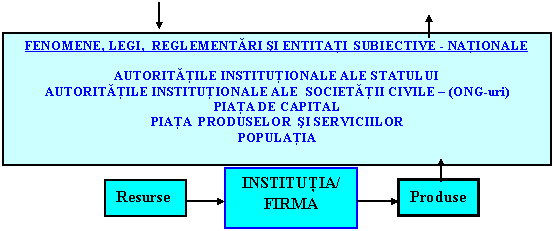 Institutia si firma sunt entitati juridice de sine statatoare care se comporta ca un sistem deschis si regenerabil in mediul descris anterior. Structura acestui sistem este reprezentata conventional si sugestiv in figura
