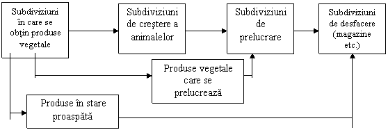 Alaturi de intreprinderile din industria alimentara exista exploatatii agricole, cu statut de intreprinderi, care combina activitati de obtinere a produselor agricole cu cele de prelucrare a acestora. O astfel de abordare corespunde unor realitati existente in economia agroalimentara romaneasca. Pe de o parte sunt procesatorii de materii prime agricole, care intervin in filierele pe produse, iar pe de alta parte, intalnim societati comerciale agricole de diferite tipuri (de exemplu, societati comerciale agricole pe actiuni, societati comerciale create pe baza de initiativa privata etc.), ale caror domenii de activitate au ca finalitate obtinerea unor produse agroalimentare cu grad mai mic sau mai mare de prelucrare si, uneori, chiar comercializarea acestora (schema nr.1).