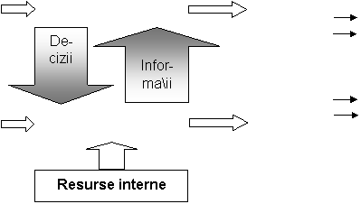 Produsele finite ale managementului sunt deciziile; adoptarea acestora este determinata de culegerea si de prelucrarea informatiilor, de cautarea solutiilor pentru atingerea scopului si de punerea lor in practica. In diagrama din fig. 1.2 50 sunt prezentate datele de intrare ale procesului managerial, "iesirea" fiind chiar obiectivul de atins.