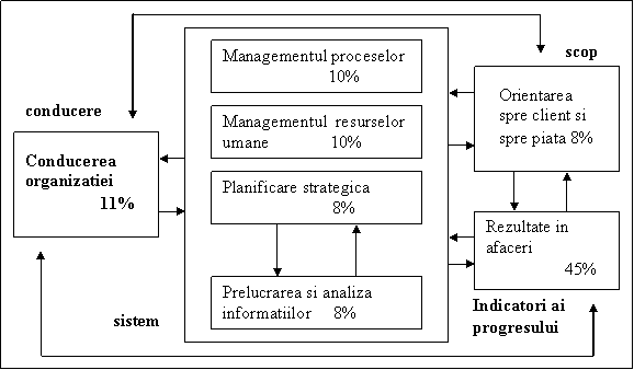 Sistemul calitatii si procesele - trebuie sa urmareasca modul in care organizatia furnizeaza ,,valoare"clientilor prin managementul propriului sistem al calitatii si al proceselor ( se refera la toate procesele din organizatie, dar indeosebi la procesele cheie care determina productia si serviciile prestate). De asemenea, urmareste modul in care organizatia: se orienteaza catre asteptarile clientilor interni si externi; gestioneaza sistemul de calitate; conduce procesele cheie pentru obtinerea produselor si serviciilor; conduce procesul de imbunatatire continua.