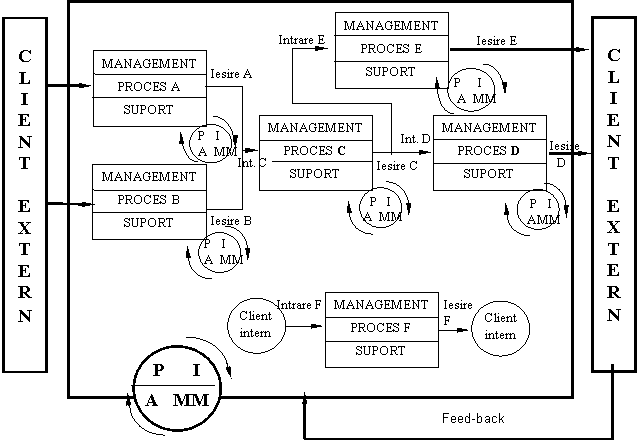 In prezent, pe plan european, in dezvoltarea, implementarea si imbunatatirea eficacitatii sistemului de management al calitatii, se promoveaza adoptarea unei abordari bazate pe proces. Pentru ca o organizatie sa functioneze eficace, aceasta trebuie sa identifice si sa conduca numeroase activitati corelate. O activitate care utilizeaza resurse conduse astfel incat sa permita transformarea elementelor de intrare in elemente de iesire poate fi considerata proces. Astfel, elementele de iesire dintr-un proces constituie in mod direct, elementele de intrare in procesul urmator. O asemenea abordare este impusa si din considerente de aplicare a tehnologiilor informatice moderne.
