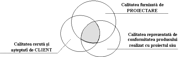 Fig. 1.4: Calitatea ceruta si asteptata de client, calitatea furnizata prin specificatiile de proiectare si calitatea reprezentata de conformitatea produsului realizat compartiv cu proiectul sau