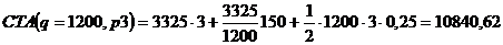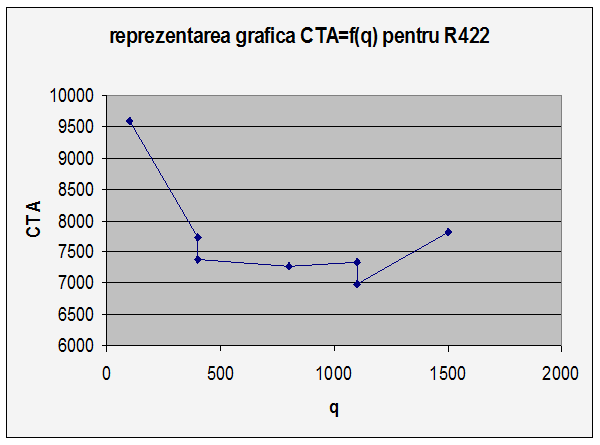 Costul total de aprovizionare se calculeaza la frontiera domeniului 3, adica() q=1200), dupa cum urmeaza:
