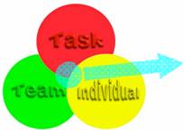 O actiune intreprinsa de lider referitoare la o componenta a modelului va avea de asemenea un impact asupra celorlate doua. Indeplinirea cu succes a sarcinii este esentiala pentru a mentine coeziunea echipei, ca de altfel si pentru motivarea indivizilor pentru ca acestia sa depuna efortul maxim la locul de munca. Se poate afirma, deci, ca cele trei elemente componente sunt interdependente, chiar si in conditiile in care fiecare isi aduce propria contributie in conturarea rolului liderilor.