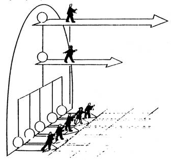 Sugestiva pe acest plan este figura nr. 4.6, conceputa de E. Jacques si S. Clement, ce sugereaza aparitia si manifestarea spiritului de echipa, starea de emulatie, in conditiile participarii si dirijarii procesului de catre leader.