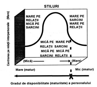 Elementele din grafic argumenteaza ideea deosebit de importanta ca, in cazul unor schimbari majore in cadrul organizatiei, trebuie adoptate anumite abordari sau stiluri de leadership in functie de dinamica procesului de schimbare si maturitatea si disponibilitatea personalului implicat. Dinamica leadeshipului se coreleaza cu stadiul schimbarilor organizationale si cu evolutia maturitatii personalului leadershipului pe baza elementelor prezentate. In conditiile societatilor comerciale si regiilor de stat din Romania, aflate in procesul unor schimbari majore, determinate de realizarea economiei de piata, aceste elemente prezinta o importanta deosebita.