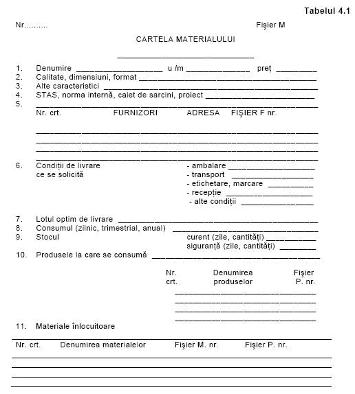 elaborarea de previziuni privind necesitatile de materiale;