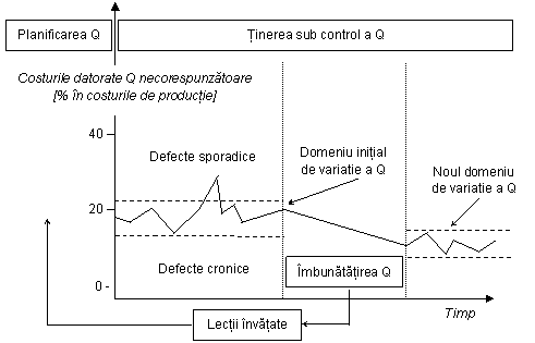 Sustinand necesitatea unei imbunatatiri continue, Juran face deosebirea intre "problemele sporadice" si "problemele cronice". In timp ce primele pot fi rezolvate de lucratori, cele cronice cad in sarcina managerilor. Ponderea problemelor cronice este foarte mare, de cca 80%, deci pentru imbunatatirea calitatii este deosebit de importanta rezolvarea prioritara a acestora.