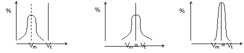Fig. 3.7. Distributii tipice ale caracteristicii de calitate. Vm - valoare medie; Vt - valoare tinta. |