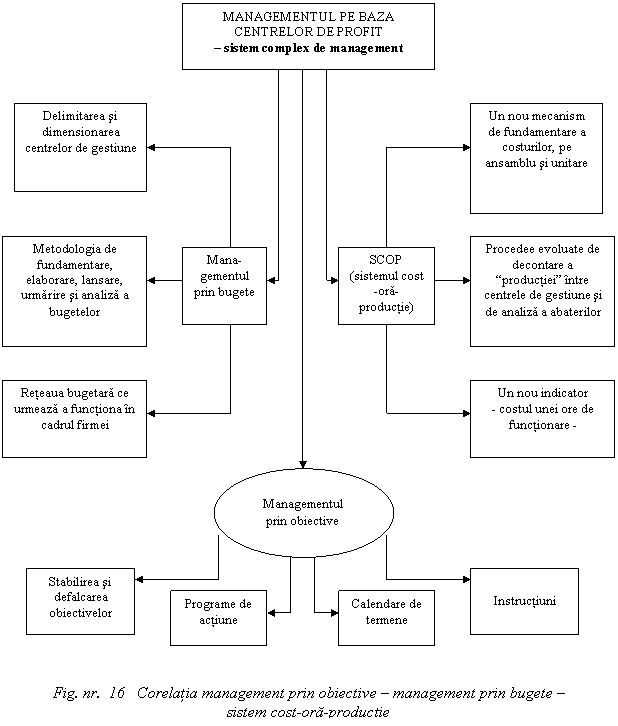 Schema urmatoare atesta complexitatea deosebita a managementului pe baza centrelor de profit, prin evidentierea instrumentelor manageriale pe care le inglobeaza de o maniera constructiva.