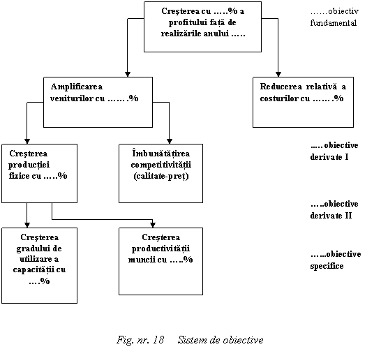 sistemul de obiective, ce cuprinde obiective fundamentale, obiective derivate de gradul I, obiective derivate de gradul II, obiective specifice si obiective individuale