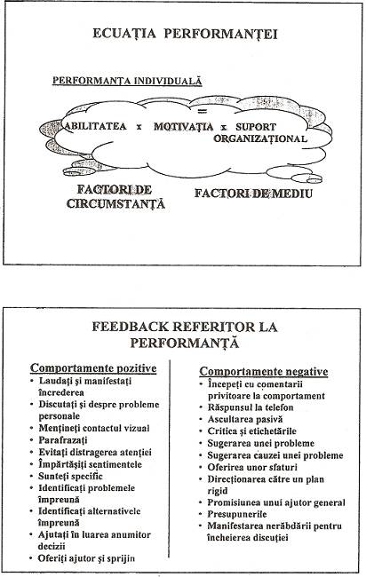 Evaluarea performantelor se va face intr-o intalnire fata in fata intre sef si subordonat in care acestia au ocazia sa clarifice toate problemele legate de performanta individuala a angajatului.