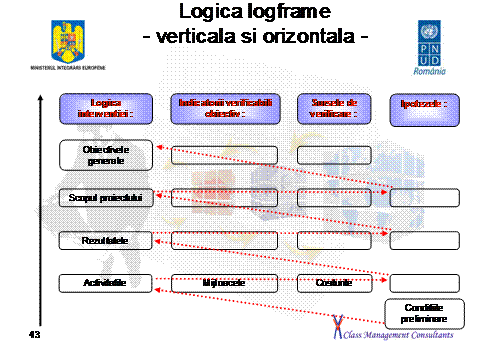 Planificarea implementarii proiectului, pe baza unui cadru de analiza logica.