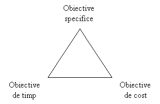 Managementul proiectelor este un concept managerial ce presupune aplicarea (utilizarea) unor principii, metode si instrumente specifice la realizarea unor proiecte. Managementul proiectelor vizeaza atingerea celor trei obiective generale. Aceste trei obiective se constituie intr-un adevarat triunghi (triada, figura 2) al managementului proiectelor.