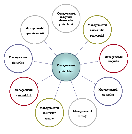 Pentru atingerea acestor obiective managementul proiectelor se dezvolta (desfasoara) de-a lungul urmatoarelor domenii (figura 3):