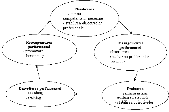 Managementul performantei urmareste imbunatatirea performantelor organizationale, functionale, de grup si individuale prin armonizarea obiectivelor fiecareia, incorporeaza job design-ul, recrutarea si selectia, training- ul si dezvoltarea, planificarea carierei, compensatiile si beneficiile alaturi de evaluarea performantelor.