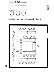 Clasele de tip special (laboratoarele) se vor mobila in functie de specificul disciplinei deservite. Dupa cum se poate vedea in figura, adoptarea unei solutii patrate permite adoptarea clasei pentru preluarea tuturor nevoilor functionale specificesalilor de clasa normale si speciale. Cele cu forma mai speciale sunt de obicei rezultatul incercarii proiectantului de a oferi spatiului o personalitate sporita, de a asigura un cadru mai intim, in incercarea de a evita severitatea patratului si din dorinta obtinerii unui volum cat mai organic. Aceste clase au defectul de a fi mai greu de construit si de a avea implicit un cost de realizat mai ridicat.