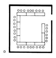 Urmeaza varianta D dupa punctaj, privit in mod descrescator. Desi aceasta dispunere a bancilor e destinata in mod special disciplinelor cu un caracter liber in rezolvarea problemelor, care apartin de profile umane (comunicare), artistice (unde necesita o scena/spatiu de expozitie), a fost preferata ca fiind o modalitate moderna, in amenajarea viitoarei clase de elevi.