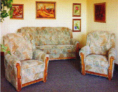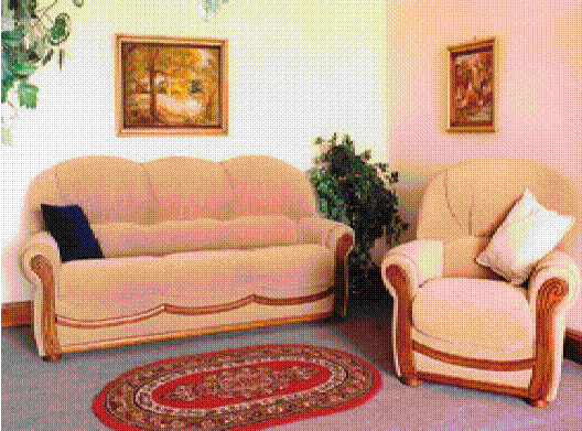 Mobilier tapitat, cu elemente decorative din lemn masiv