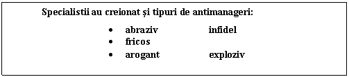 de agitatie - tonus ridicat, pierderea increderii in potentialul subordonatilor;