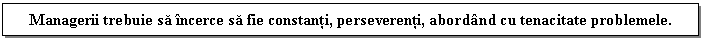 Un bun manager nu se teme sa adopte hotarari sau sa intreprinda actiuni de unul singur atunci cand este nevoie si nu iroseste timpul oamenilor consultandu-i inutil sau convocand intalniri pentru a angaja tot personalul in procesul de luare a unei decizii intr-o problema minora.