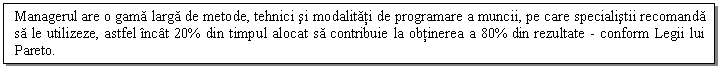 Astfel, pentru eficientizarea activitatii managerului, se are in vedere promovarea si utilizarea pe scara larga a: