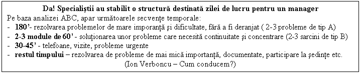 Pentru programarea timpului managerial este foarte important: