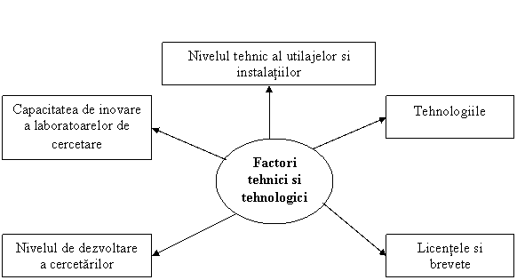 Factorii tehnici si tehnologici : care alcatuiesc mediul extern al intreprinderii se refera la nivelul tehnic al utilajelor si instalatiilor, tehnologiile furnizate, licentele cumparata de intreprindere, nivelul de dezvoltare a cercetarilor, capacitatea de inovare a laboratoarelor de cercetare.