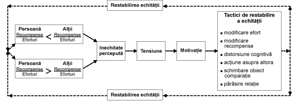 Angajatii, membri oricarui grup, isi compara efortul depus la locul de munca, cu efortul altora, respectiv recompensele pe care le obtin in urma depunerii acestui efort, cu cele pe care altii le obtin. Daca in comparatia cu aceste persoane relevante, percepem raportul ca fiind just, atunci consideram ca exista o situatie de echitate - o relatie corecta de schimb angajat-organizatie. Dar, daca percepem raportul ca fiind inegal, putem trai stare de inechitate.