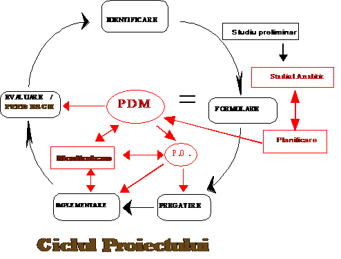 Asa cum am vazut si in capitolele anterioare, proiectele se realizeaza intr-o succesiune de etape, pornind de la un document strategic de dezvoltare din care se desprinde ideea de proiect intr-un anumit domeniu (ex. resurse umane, infrastructura, mediu, turism, etc), care apoi este formulata, implementata si in final evaluata, cu scopul de crea conditiile necesare pentru realizarea unor actiuni viitoare de dezvoltare. Ciclul de proiect este o metoda care se bazeaza pe planificarea participativa, in cadrului unui grup si cuprinde sase faze: programarea, identificarea, formularea, finantarea, implementarea si evaluarea.