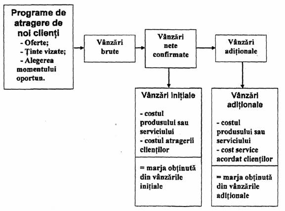 Astfel, contributia actiunilor de atragere a clientilor la valoarea aportata de clienti se poate determina ca o diferenta intre venituri si costuri.