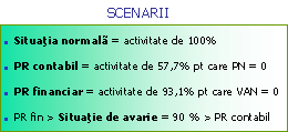 Spre exemplu in scenariul 3, un nivel de activitate de 90% in raport cu activitatea normala de 100% va conduce la un nivel al profitului net de 9.849, ceea ce pare a fi suficient de acoperitor pentru performanta intreprinderii: