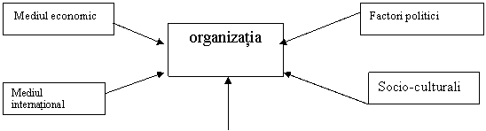 Asigurarea unei functionalitati eficiente a organizatiei necesita cunoasterea de catre manageri a tuturor variabilelor endogene si exogene care influenteaza activitatea organizatiei. Succesul organizatiei depinde gradul in care intreprinderea reuseste sa se acomodeze si sa controleze influenta factorilor din mediul exterior. Factorii din exteriorul organizatiei care actioneaza intr-o forma sau alta asupra acestea reprezinta contextul in care organizatia exista.