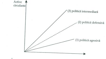 In ceea ce priveste finantarea activelor circulante intr-o politica agresiva (1), accentul cade in principal pe pasivele pe termen scurt (datorii de exploatare, credite bancare etc.), care au cele mai mici costuri de procurare a lor, dar care determina si o preocupare stresanta de a reinnoi creditele pe termen scurt, la dobanzi mai mari sau chiar riscul unei lipse de capital.