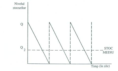 Daca cantitatea ceruta la fiecare reaprovizionare este Q, atunci stocul mediu va fi Q/2.