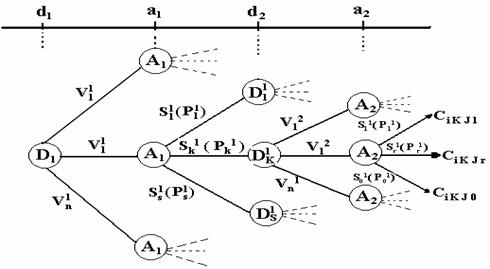 Solutionarea problemei decizionale se va face pornind de la cerintele fiecarei variante, potrivit conceptului "roll back", prin calculul sperantei matematice.Astfel, pentru modului decizional, D1K :